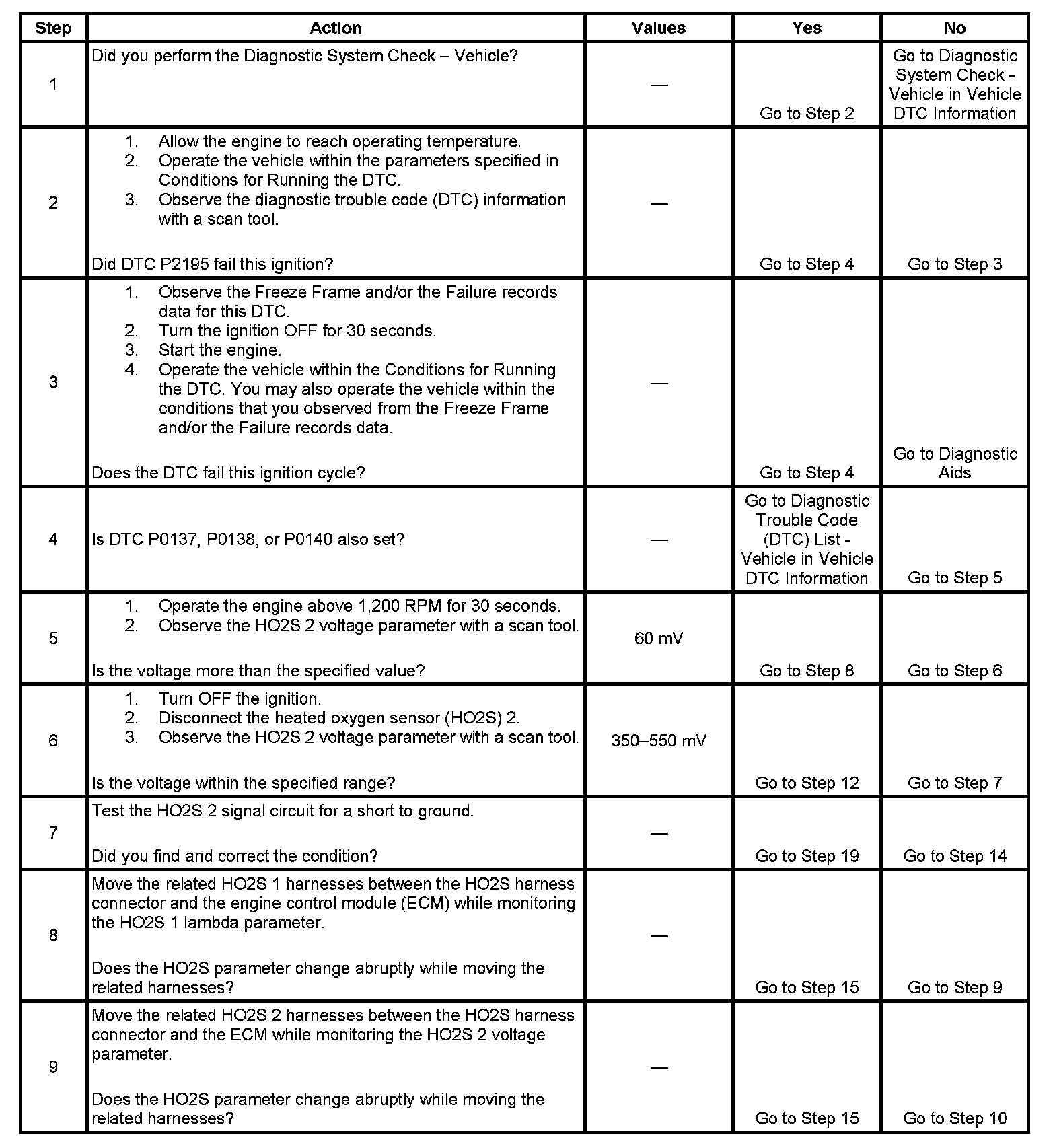 - Before the ECM can report DTC P2195 failed, DTCs P0030, P0031, P0032, P0036, P0037, P0038, P0053, P0101, P0130, P0131, P0132, P0133, P0135, P0137, P0138, P0140, P0141, P167A, P2231, P2237, P2243, P2251, P2270, P2271, P2297 and P2626 must run and pass.