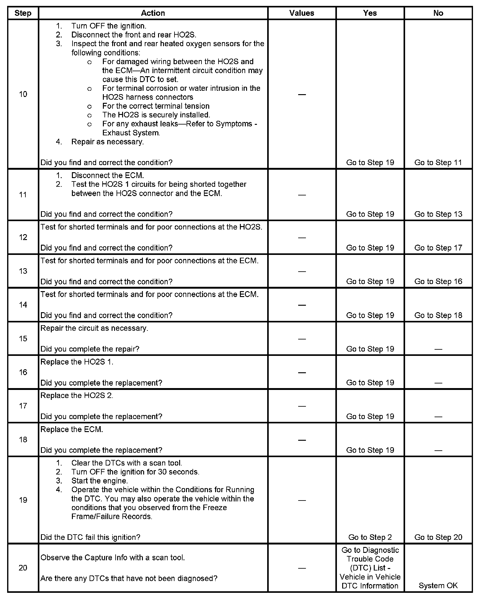 5. This step is testing for a rear HO2S sensor circuit condition. A circuit condition sets this DTC.
