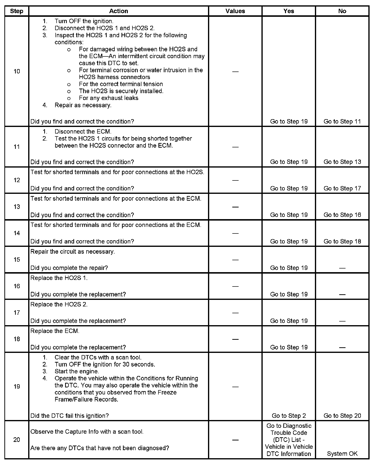 9. This step is testing for an intermittent circuit condition. Thoroughly inspect the HO2S circuits for an intermittent circuit condition.