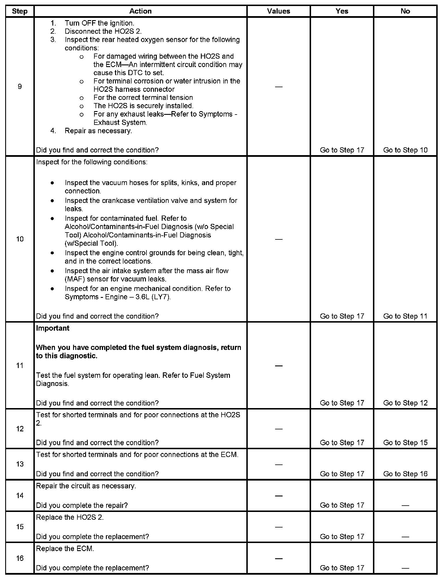 - The ECM monitors the HO2S 2 voltage to determine if the signal voltage goes above a predetermined threshold within a certain amount of time. If the ECM determines that the signal voltage remains below a threshold, the ECM commands a rich condition. If the signal voltage does not go above the threshold within a certain amount of time after commanding the system rich, this DTC sets.