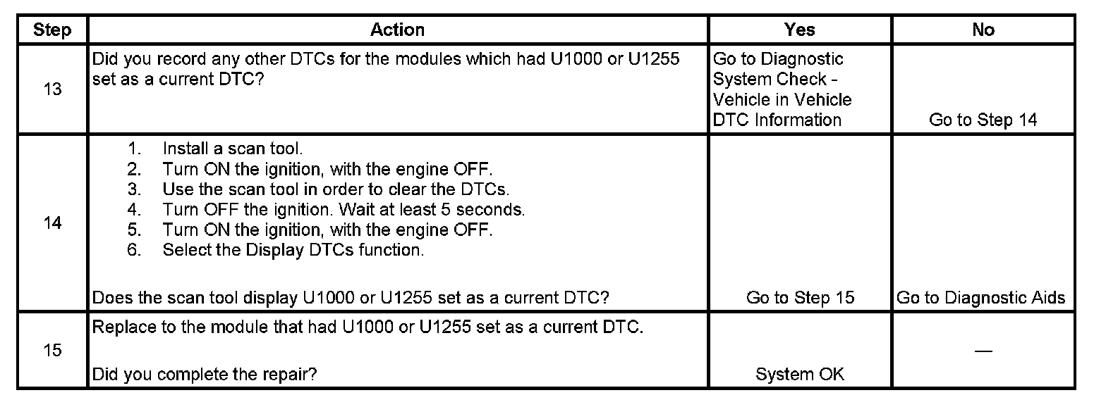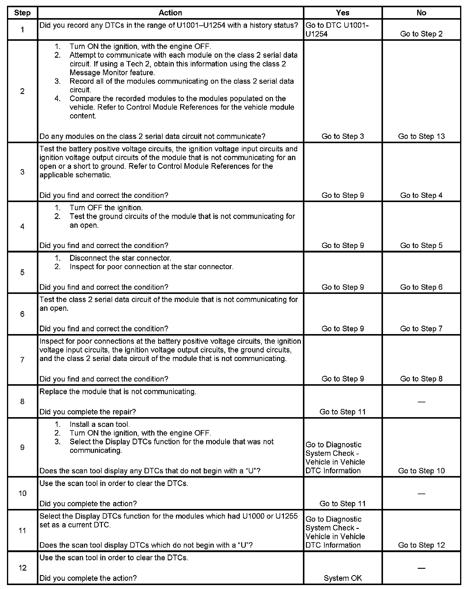 2. The module that is not communicating is the likely cause of U1000 or U1255 being set. Refer to Control Module References for the modules populated on the vehicle.