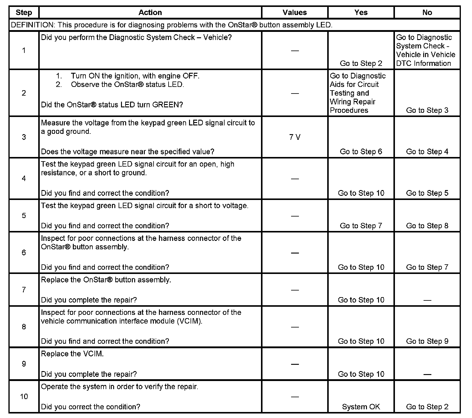 ONSTAR BUTTON LED INOPERATIVE