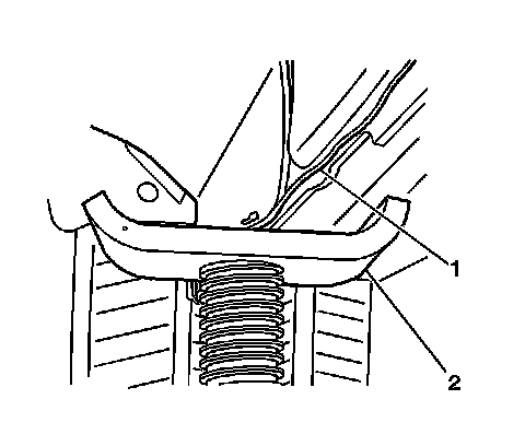 8. Install the brake hose mounting bolts (1) to the body brackets (2).