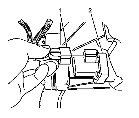 6. For all wheel drive, connect the electrical connector (1) into the rear differential clutch pump check valve (2).