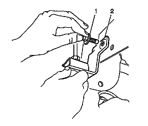 7. Remove the brake hose mounting bolts (1) from the body brackets (2).