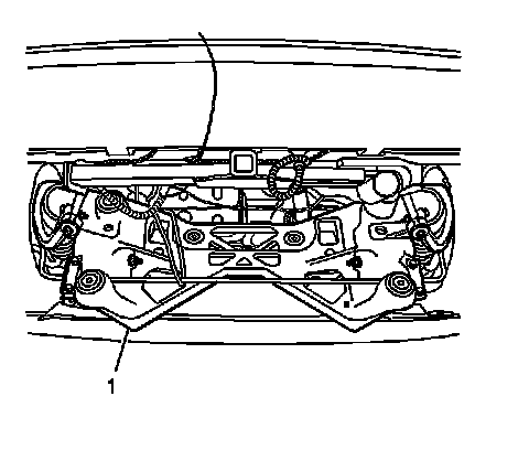 2. With the help from an assistant, guide the rear crossmember (1) into place while the assistant raises the hoist.