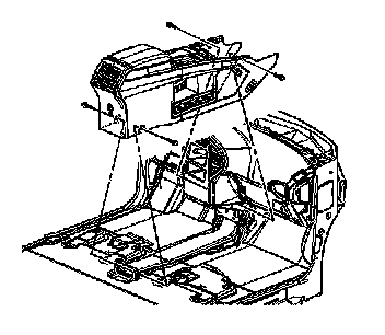 1. Remove the front floor console trim plate. Refer to Trim Plate Replacement - Front Floor Console (Aztek) (Trim Plate Replacement - Front Floor Console)Trim Plate Replacement - Front Floor Console (Rendezvous) (Trim Plate Replacement - Front Floor Console) .