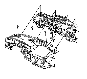 7. Remove the upper trim pad from the I/P. Refer to Trim Pad Replacement - Instrument Panel (I/P) Upper (Aztek) (Instrument Panel (IP) - Trim Pad Replacement - Upper)Trim Pad Replacement - Instrument Panel (I/P) Upper (Rendezvous) (Instrument Panel (IP) - Trim Pad Replacement - Upper) .