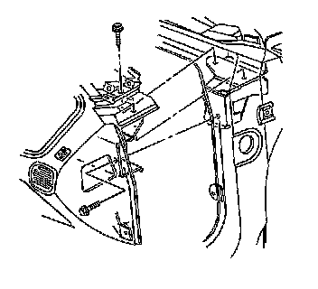 13. Remove the hood release handle. Refer to Hood Latch Release Handle Replacement (Hood Latch Release Handle) in Body Front End.