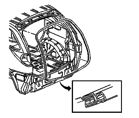 1. Install the liftgate weatherstrip starting at the top center of the liftgate opening. Position the liftgate weatherstrip to the pinch-weld flange, and working down the right and left sides towards the bottom center, being careful not to stretch the liftgate weatherstrip while installing it.