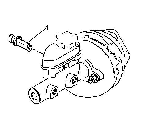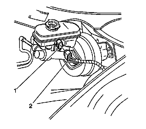 2. Remove the fluid level sensor (1). Use needle nose pliers in order to compress the switch locking tabs at the outboard side of the master cylinder.
