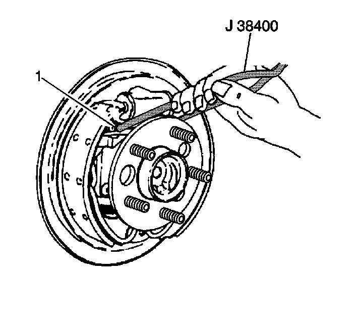 8. Use the J38400 in order to spread the brake shoes apart (1).
