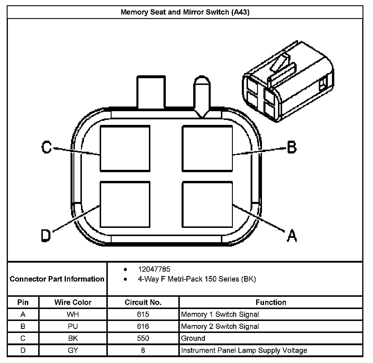 Memory Seat And Mirror Switch (With RPO Code A43):
