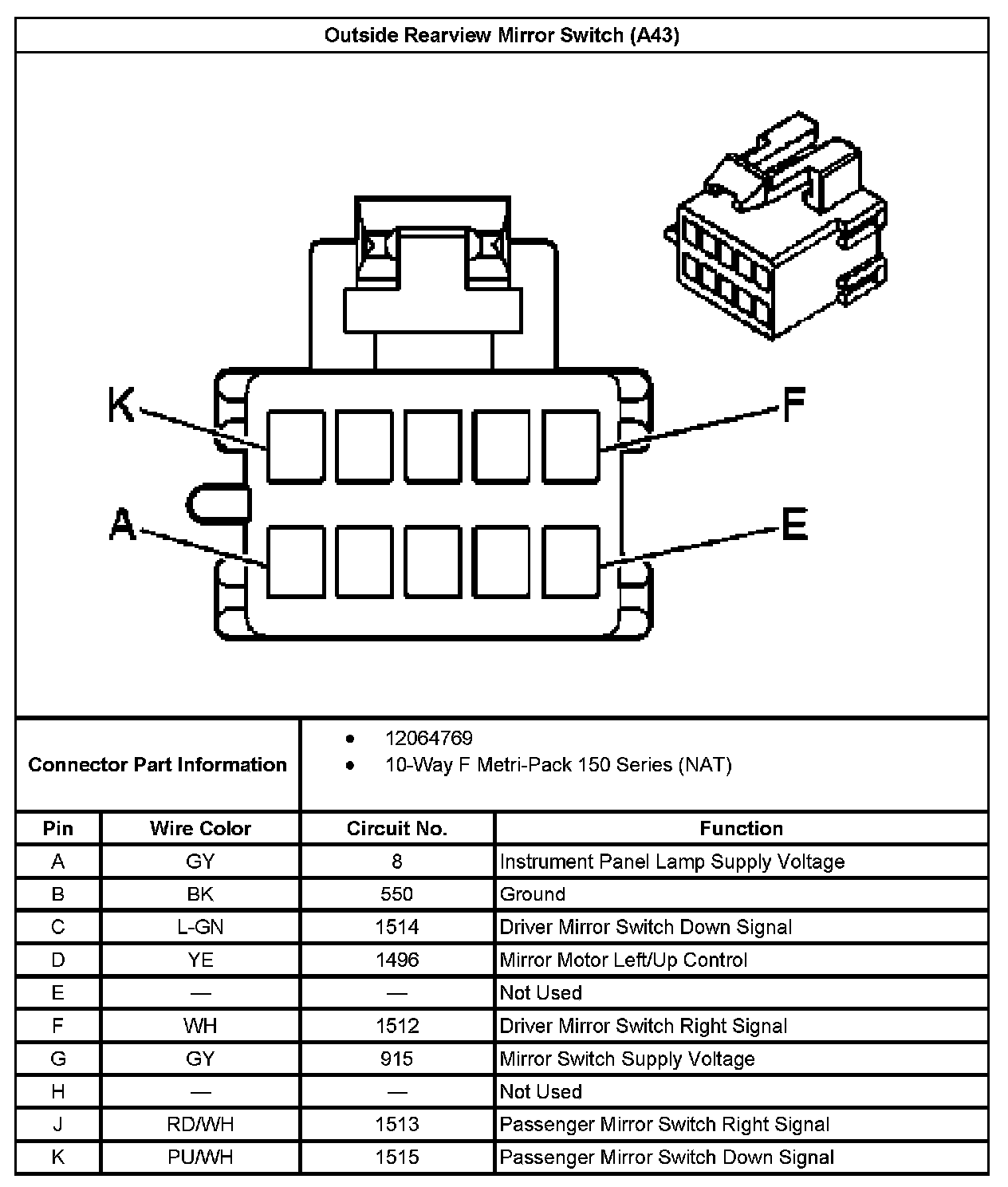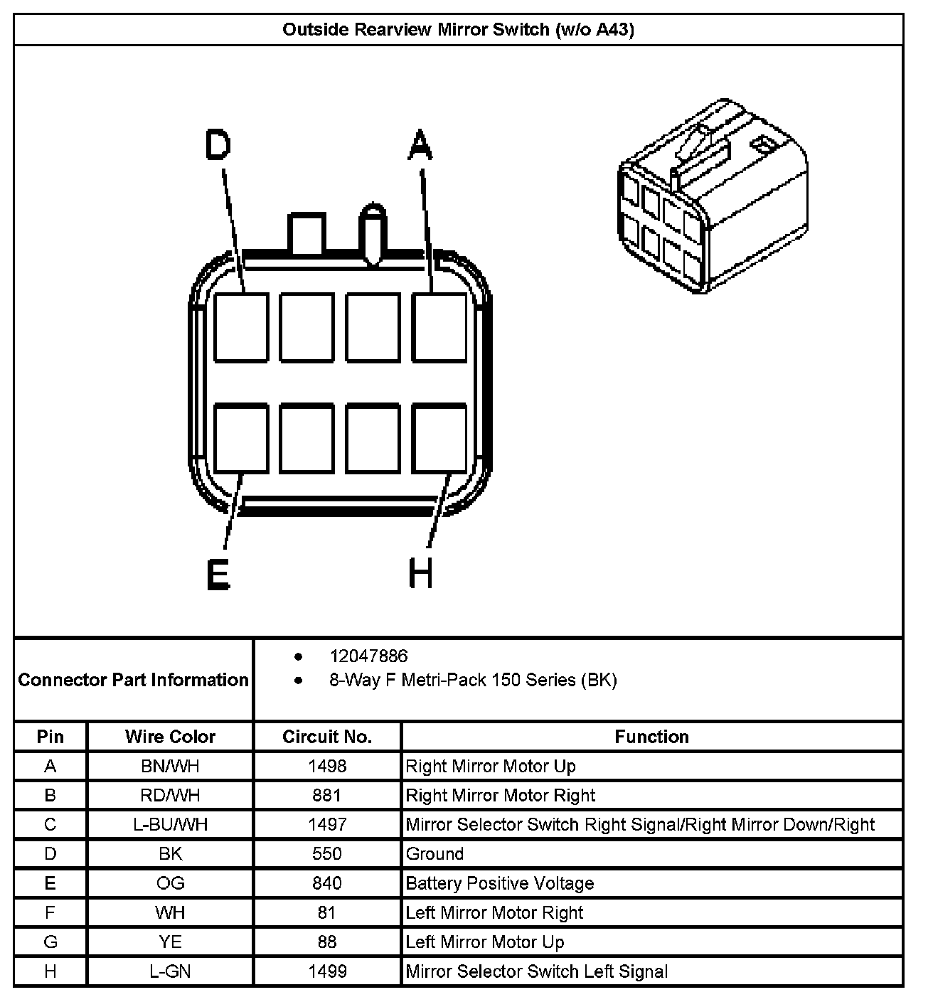 Outside Rearview Mirror Switch (With RPO Code A43):