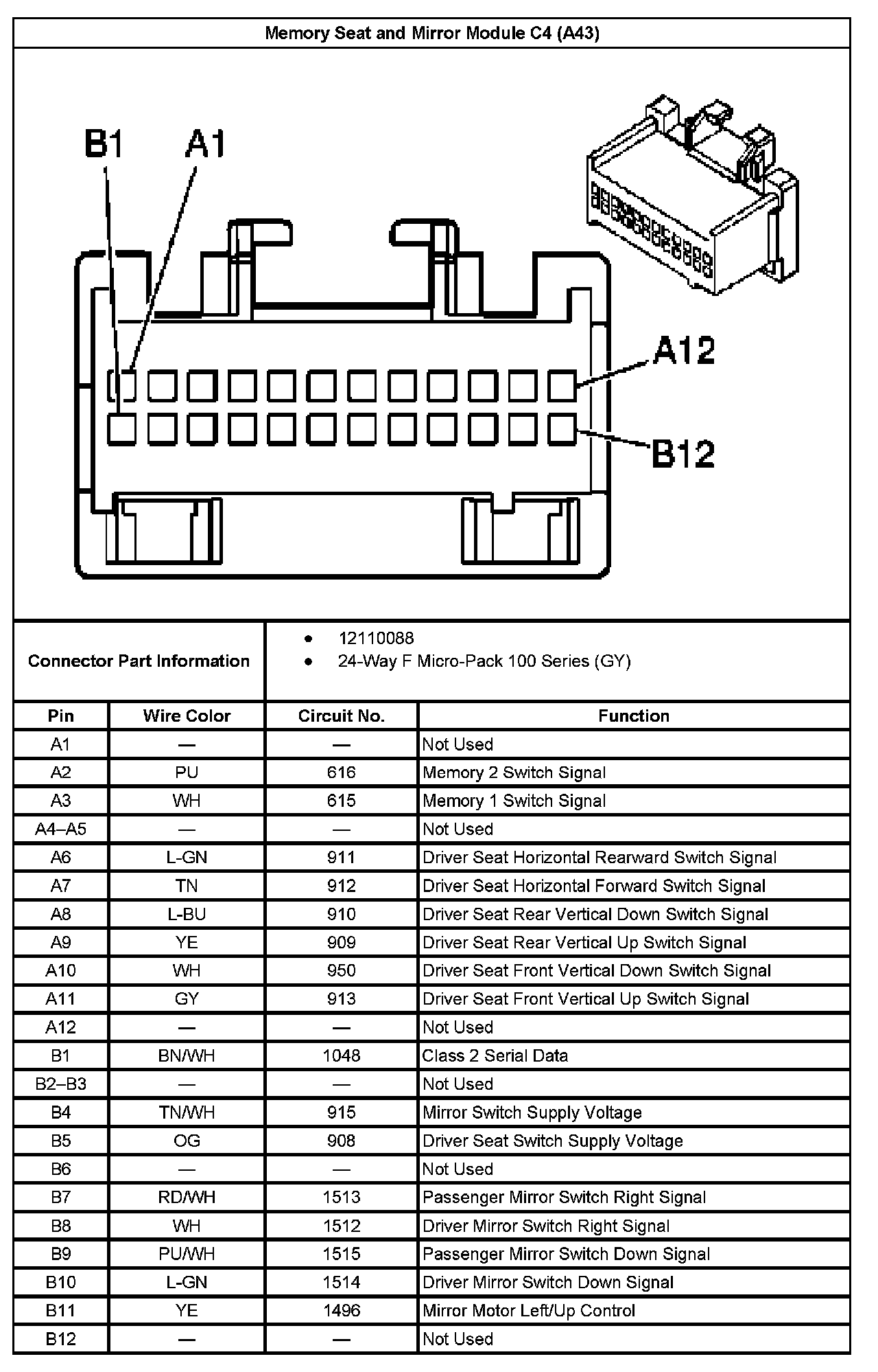 Memory Seat And Mirror Module C4 (With RPO Code A43):