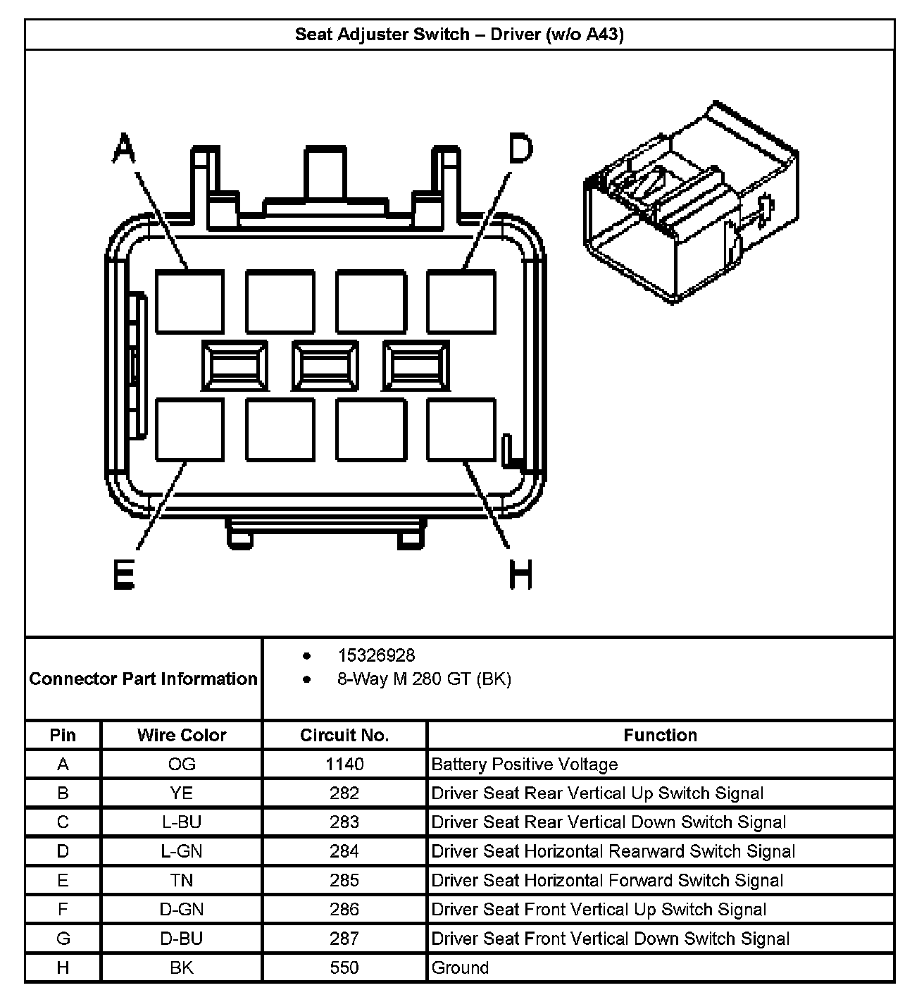 Seat Adjuster Switch - Driver (With RPO Code A43):
