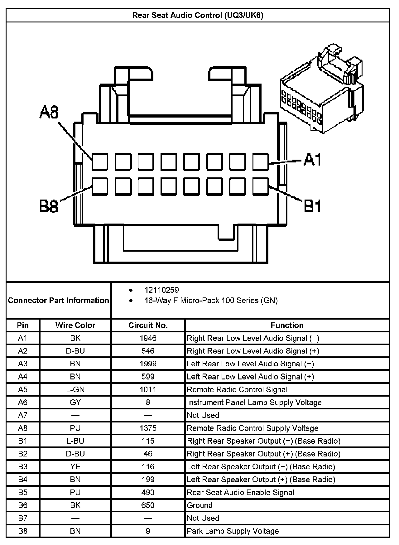 Rear Seat Audio Control (With RPO Code UQ3/UK6):
