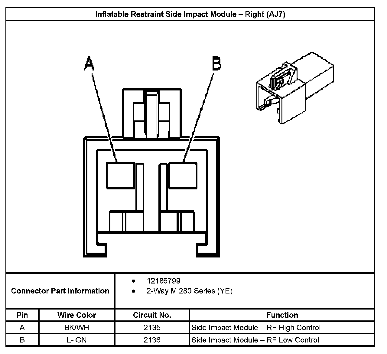 Inflatable Restraint Side Impact Module - Right (With RPO Code AJ7):