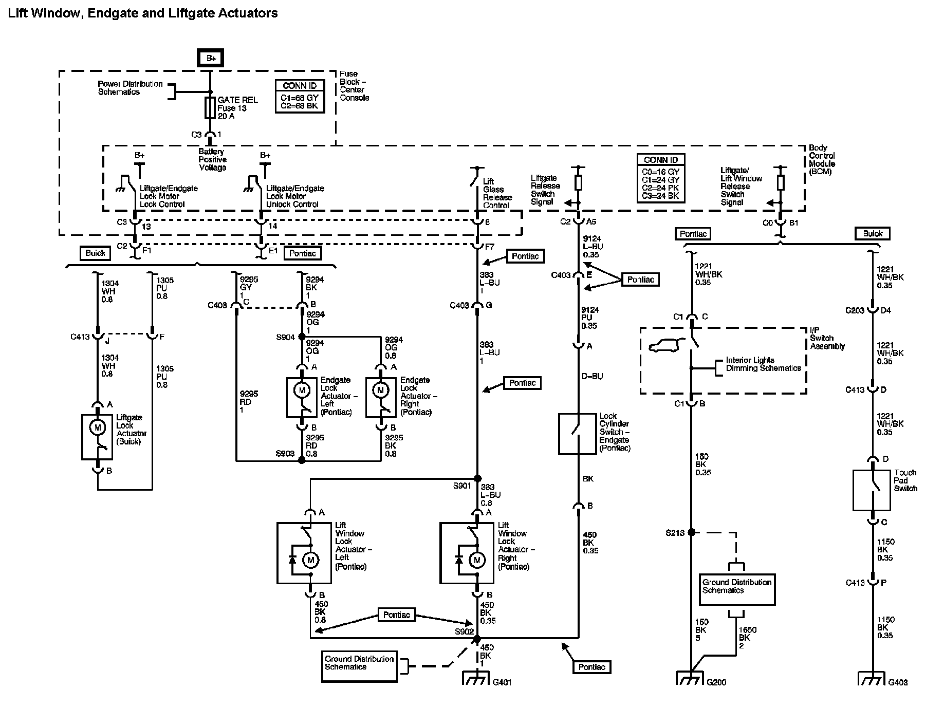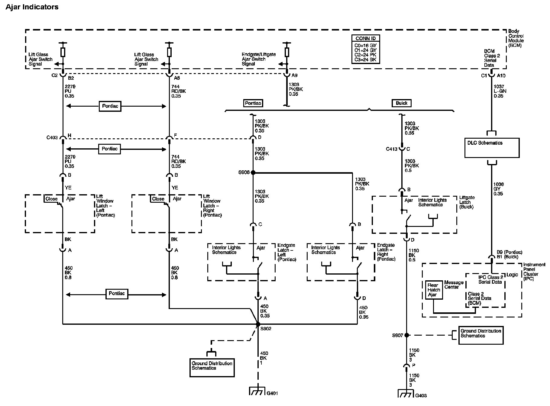 The locations for the Connectors, Grounds, Splices, and Grommets shown within these diagrams can be found via their numbers at Vehicle Locations.