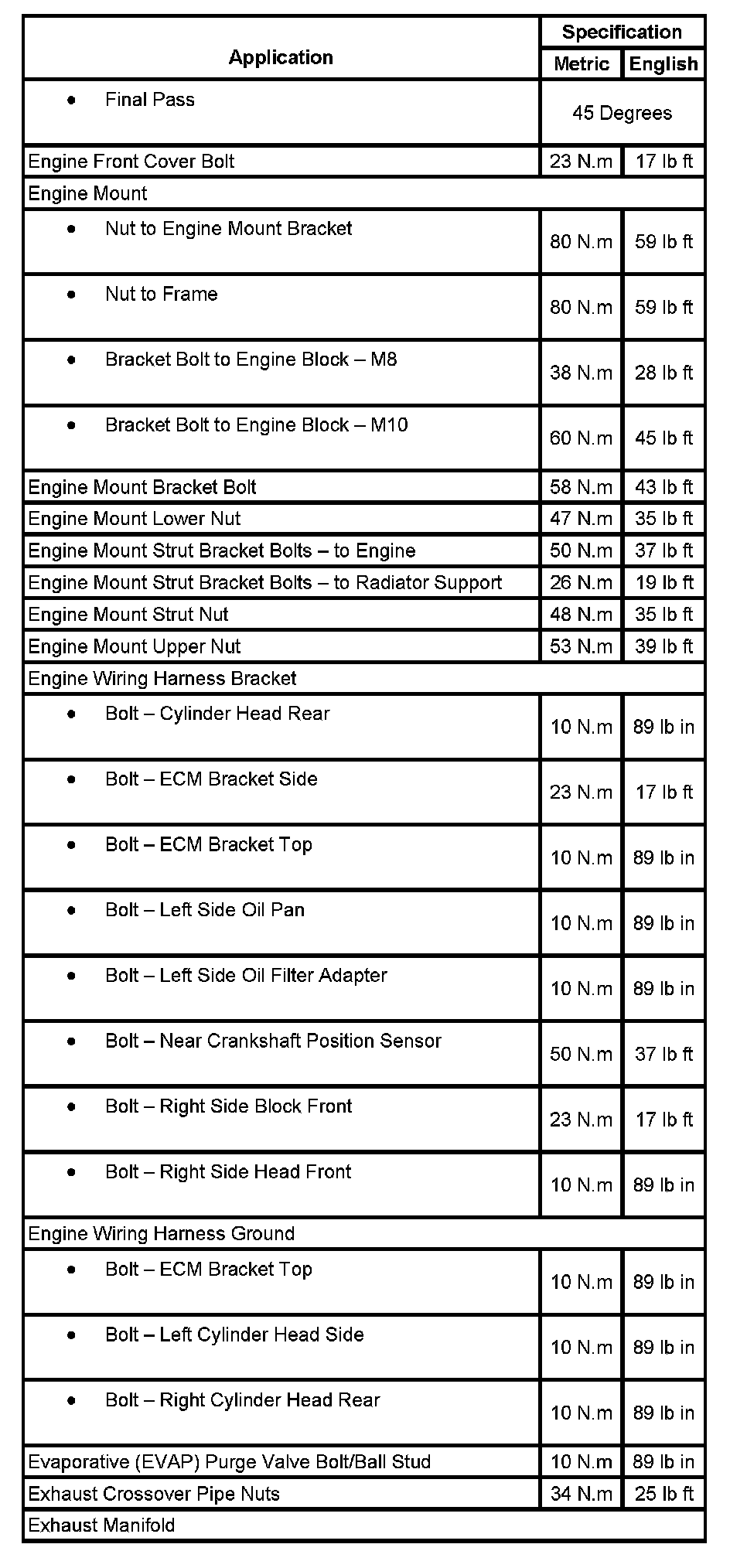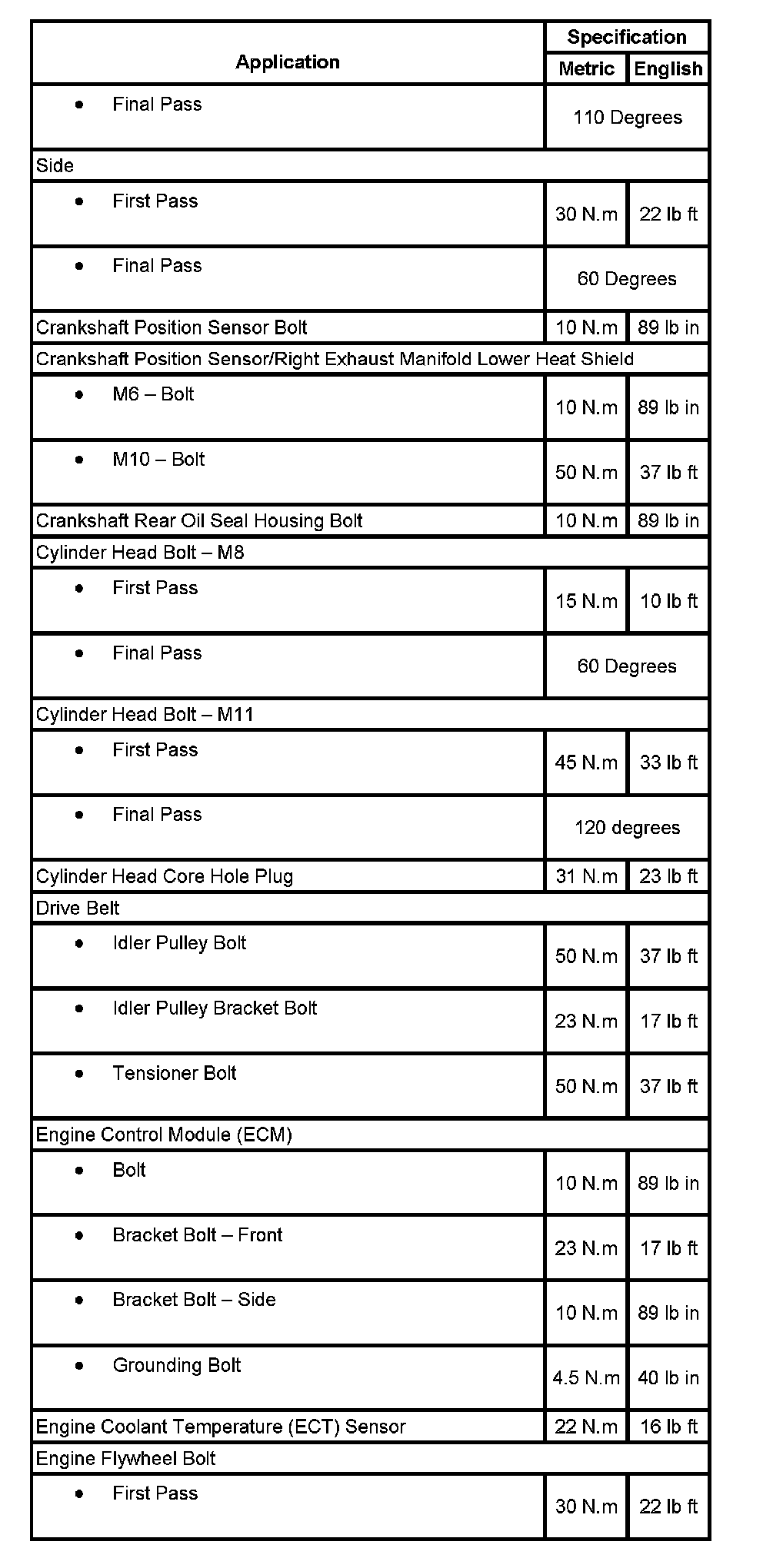 Tightening Torques & Sequences