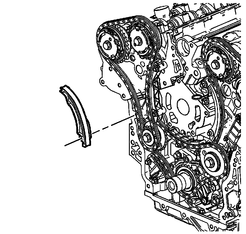 1. Install the right bank secondary camshaft drive chain shoe. 126. Secondary Camshaft Drive Chain Shoe Installation - Right