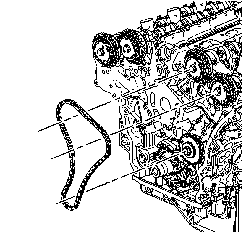 7. Install the primary camshaft drive chain. 120. Primary Camshaft Intermediate Drive Chain Installation