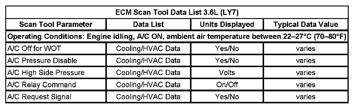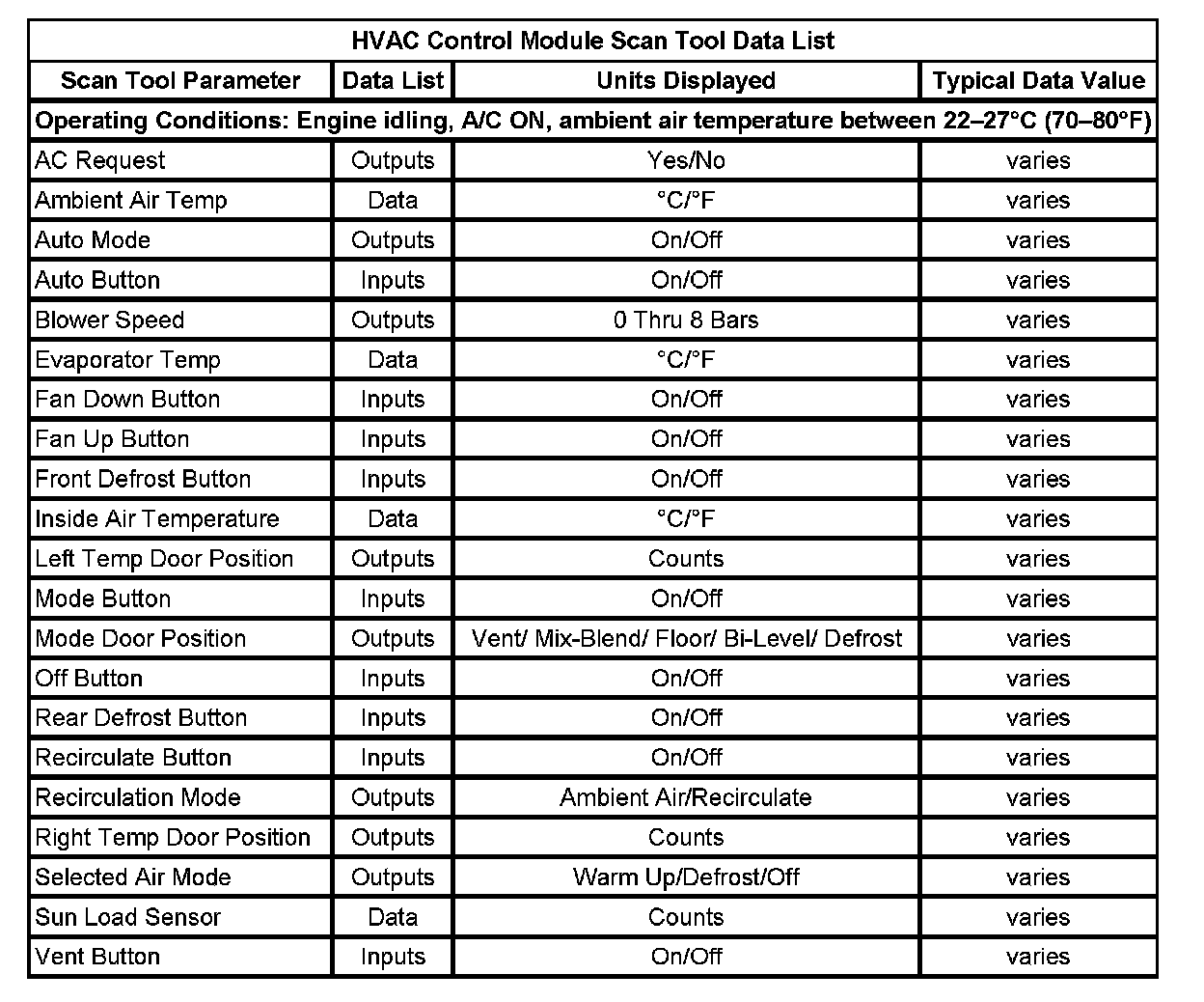 HVAC Control Module Scan Tool Data List: