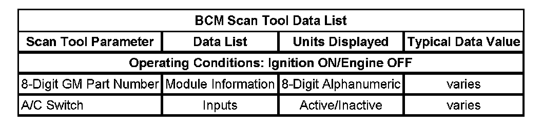 BCM Scan Tool Data List: