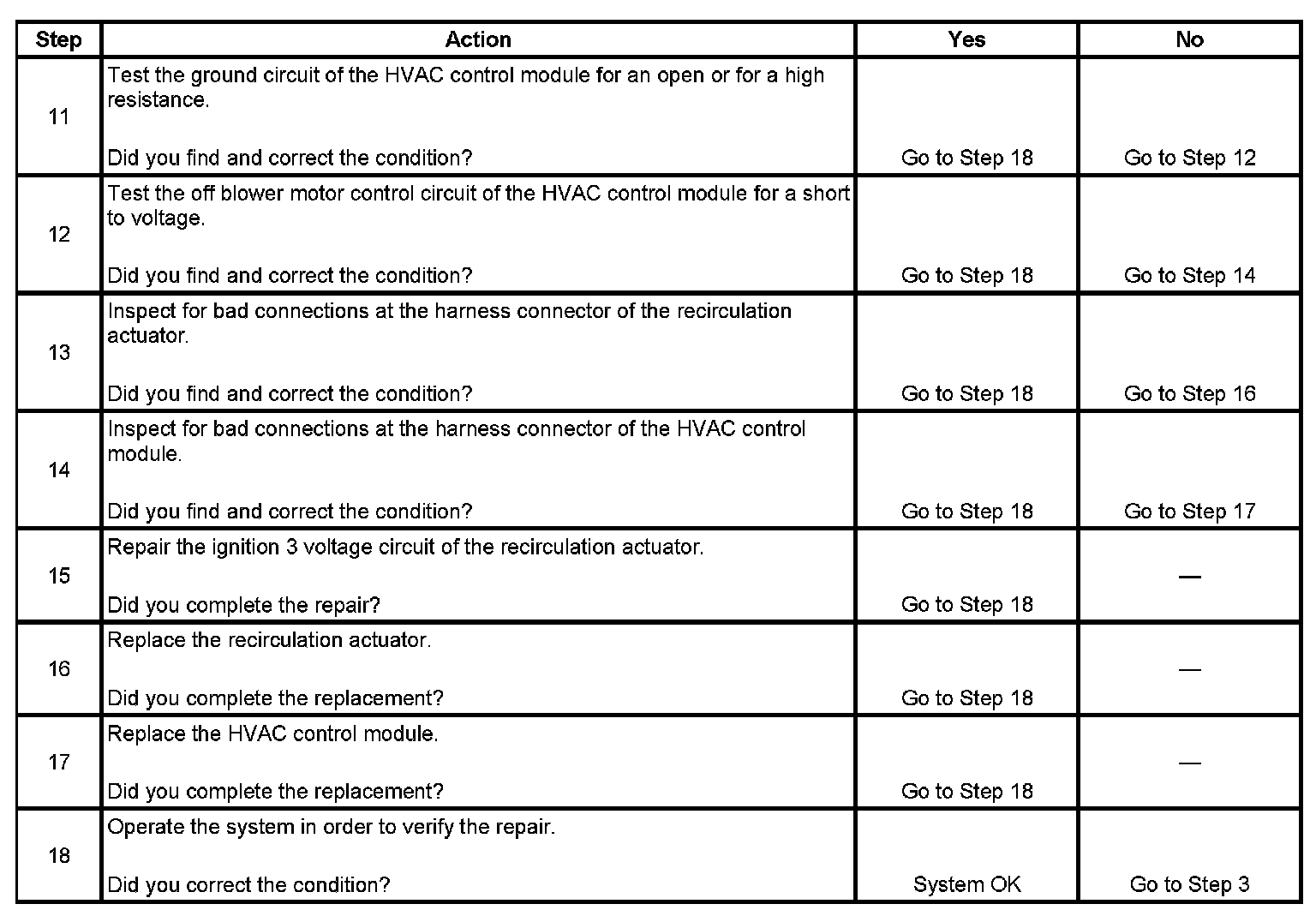 9. The HVAC control module is supplied by 2 ignition 3 voltage circuits. Test the ignition 3 voltage circuit that does not supply the blower motor switch.