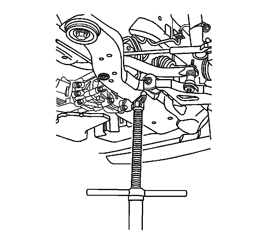 16. Use the floor jack to lower the right side of the frame and powertrain to provide clearance to the reservoir.
