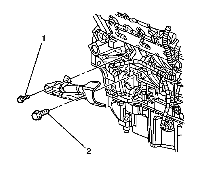 8. Remove the crank sensor heat shield bolts (1, 2) and the heat shield.