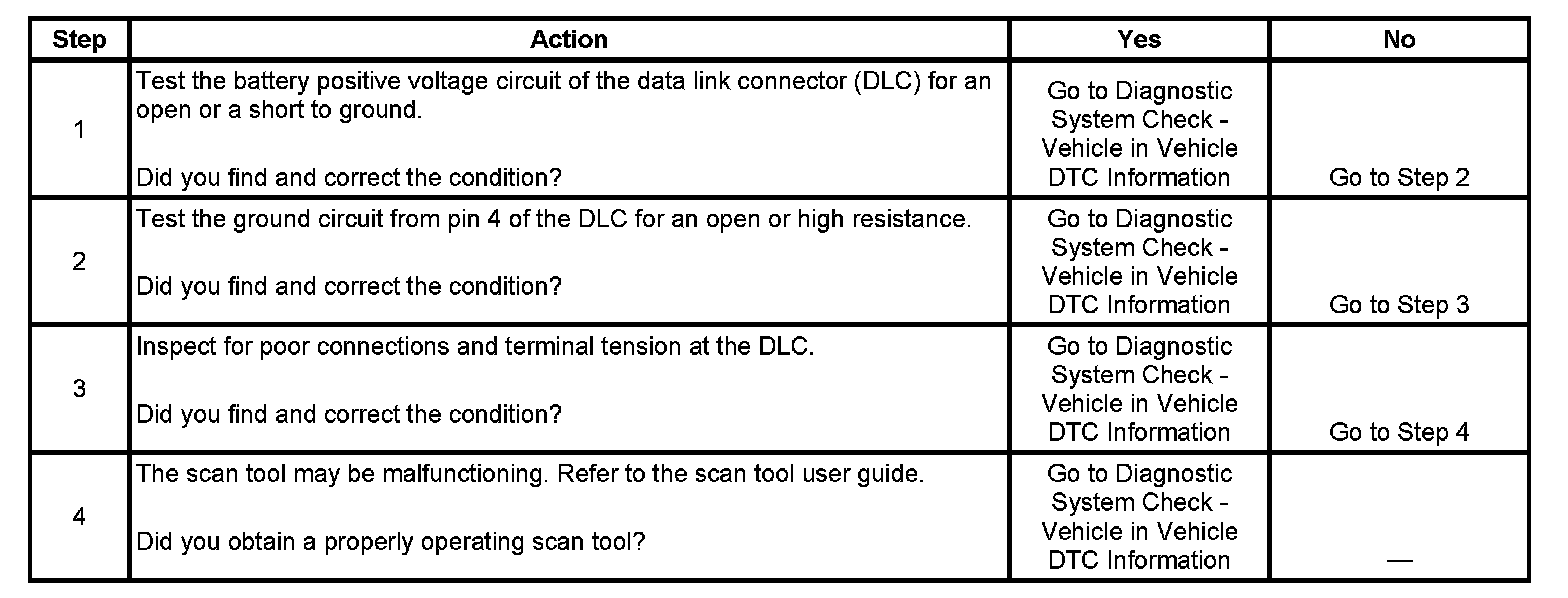 4. If the battery positive voltage and ground circuits of the DLC are functioning properly. The malfunction must be due to the scan tool.