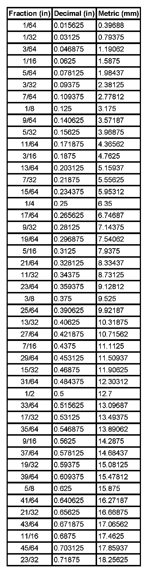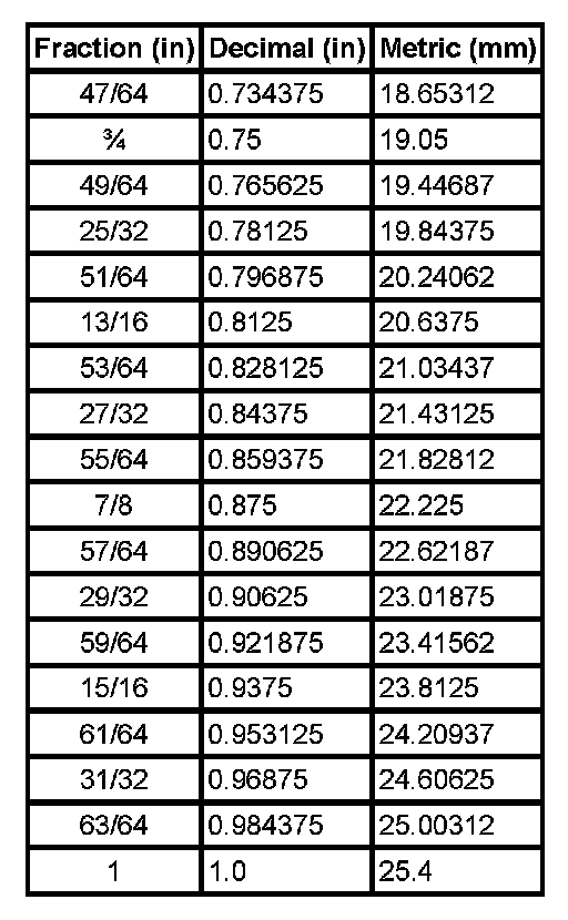 Equivalents - Decimal And Metric