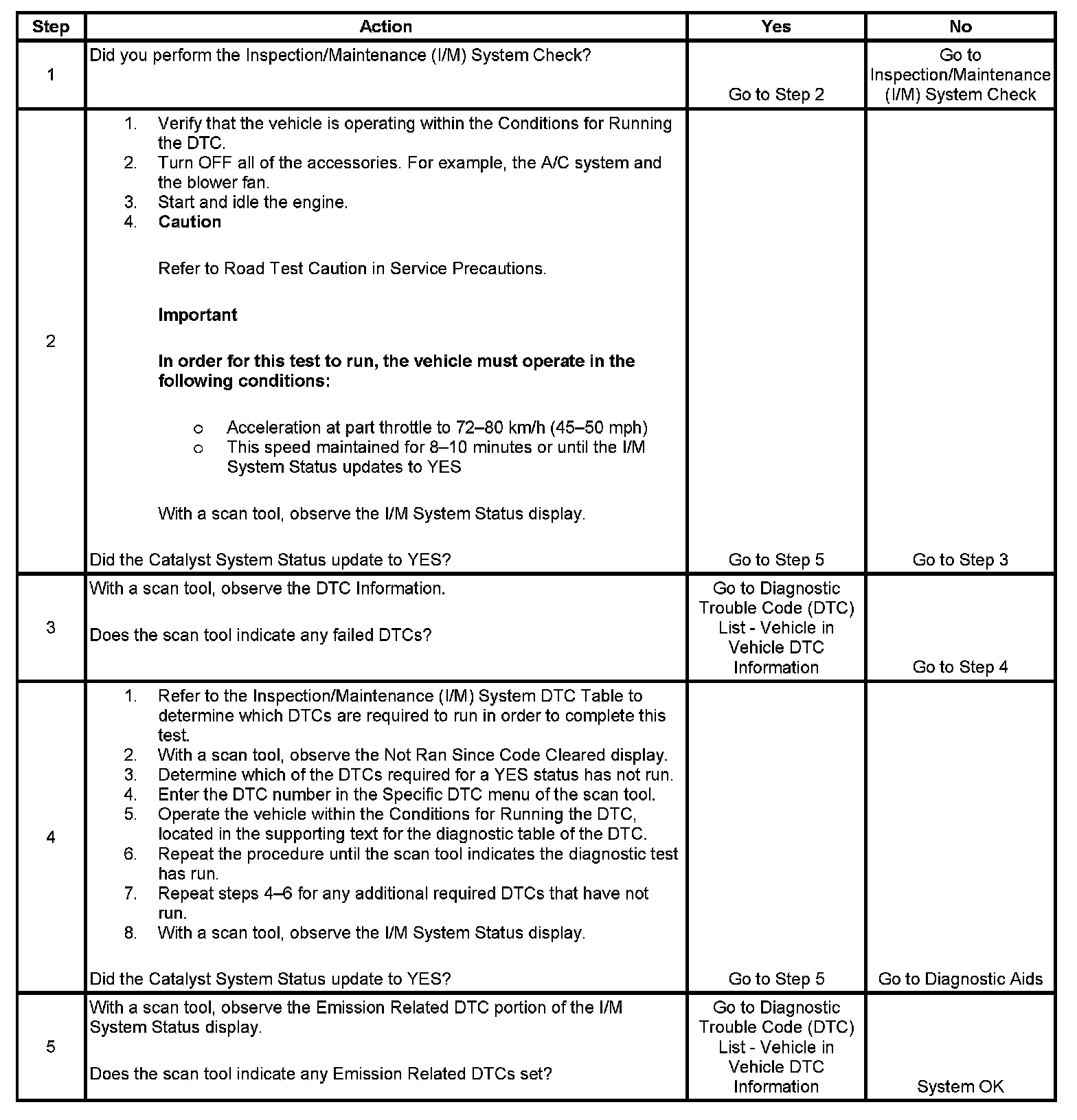6. The I/M System Status only reports on whether or not a diagnostic has run, not what the outcome of the test was. If any emission related DTC sets after the tests are complete, the DTC will require diagnosis.