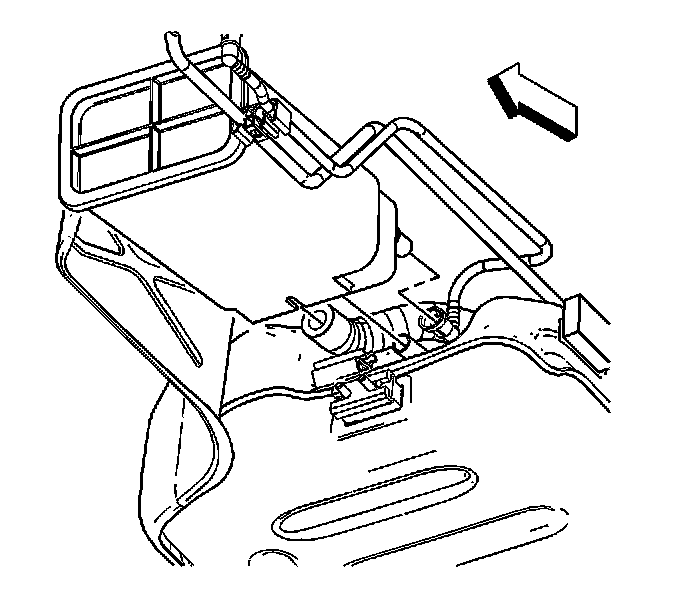 1. Remove the evaporative emission (EVAP) canister front bracket nut.