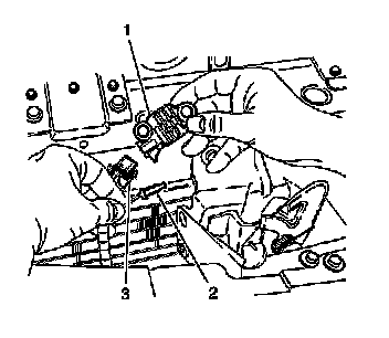 2. Connect the sensor harness connector (3) to the sensor (1).