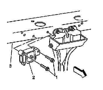 8. Remove the sensor (2) from the upper radiator core support (3).