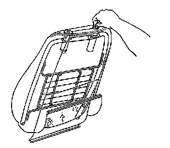 5. Reach carefully inside the front seat back between the seat back cover and the seat back pad and squeeze the bottom of the headrest retainer together, while pulling the headrest retainer upwards from the seat back frame.