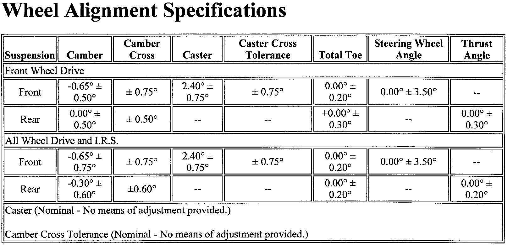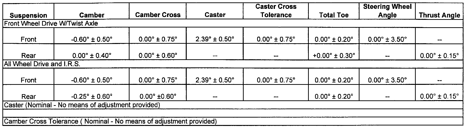 Wheel Alignment Specifications