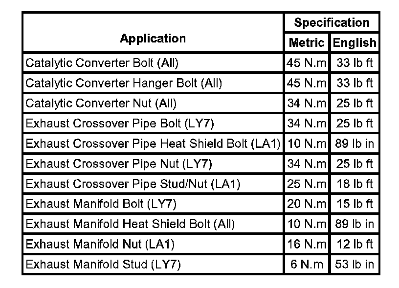 Torque Specifications: