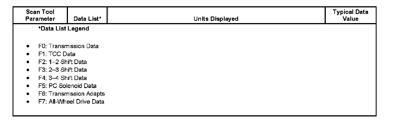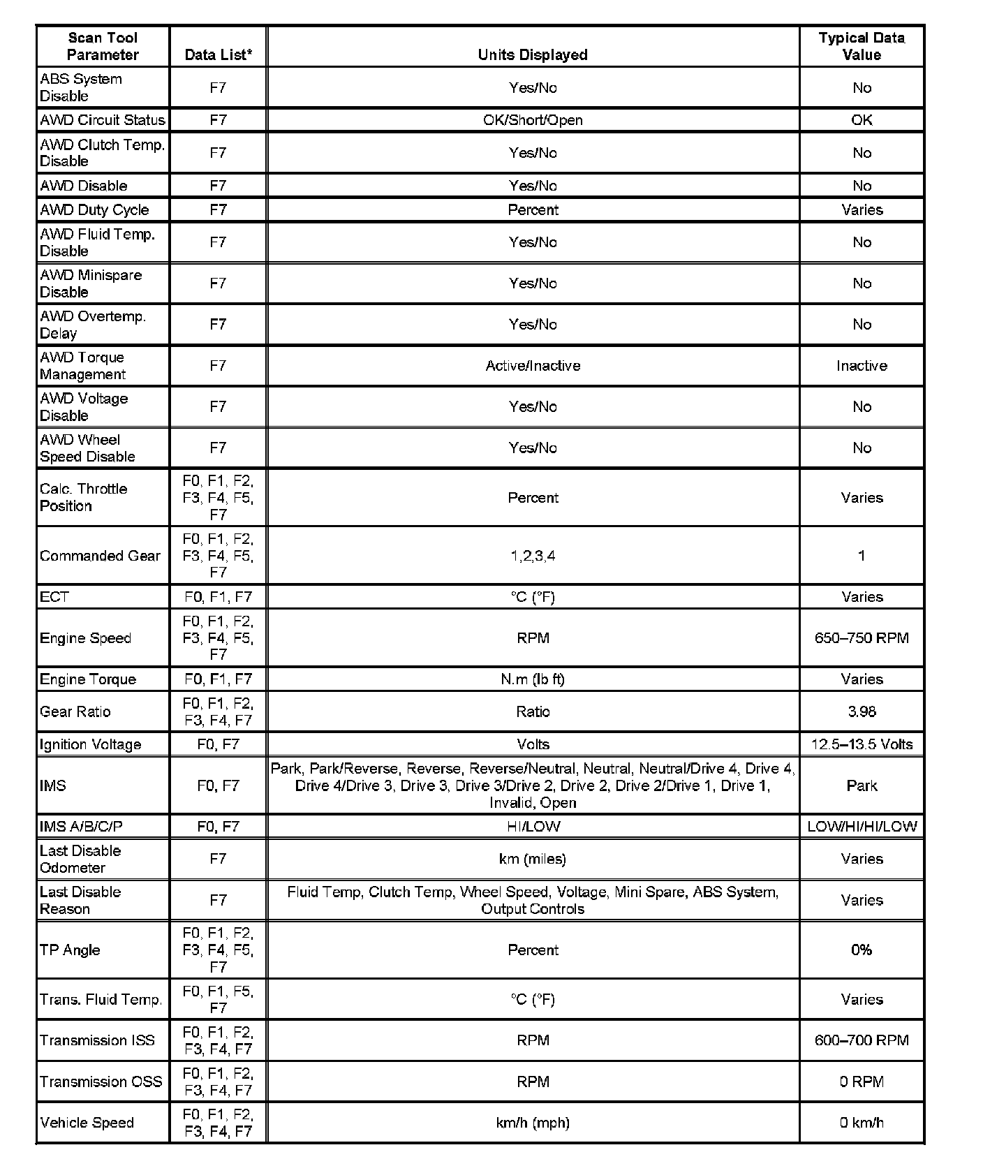 Only the parameters listed below are used in this manual for diagnosing. If a scan tool displays other parameters, the values are not recommended by General Motors for use in diagnosis.