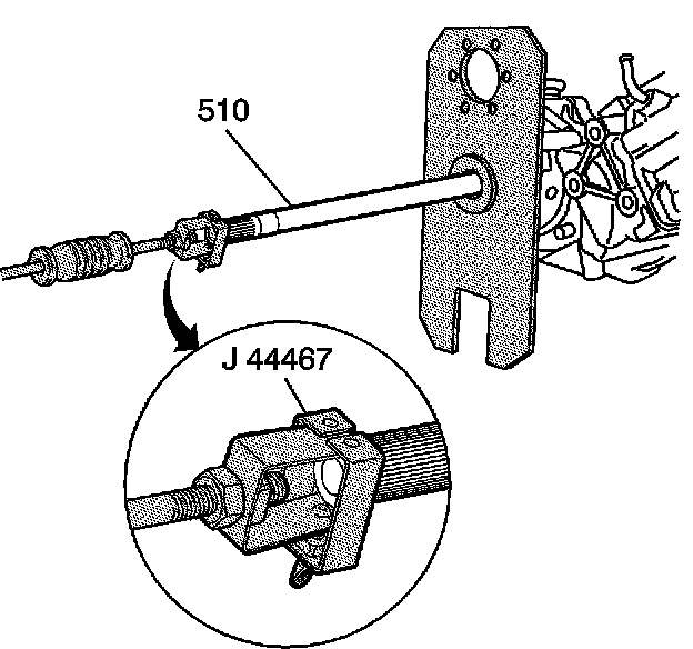 21. Install the J 44467 into the snap ring groove on the output shaft (510) and tighten securely.
