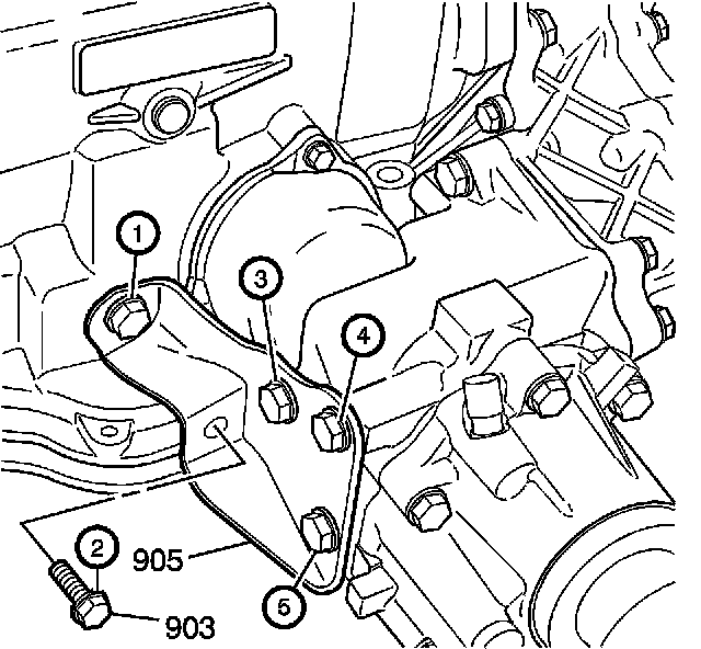 1. If you are replacing the transfer case, install the transfer case lower brace (906) and the lower brace bolts (903). Do not tighten the bolts.