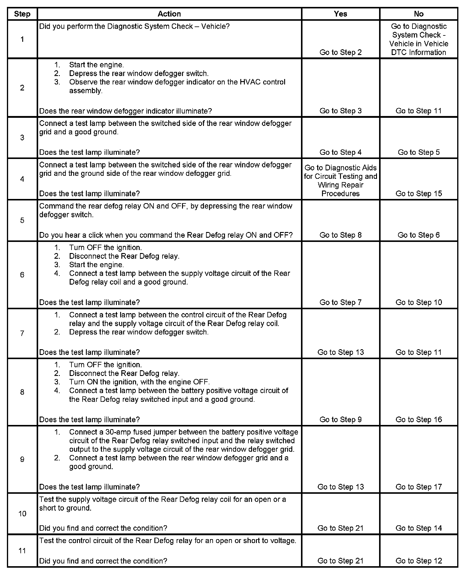 5. Listen for an audible click when the Rear Defog relay operates. Command both the ON and OFF states of the rear defog relay. Repeat the commands as necessary.