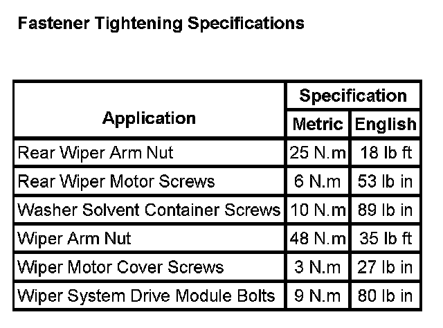 Wiper and Washer Systems: Specifications