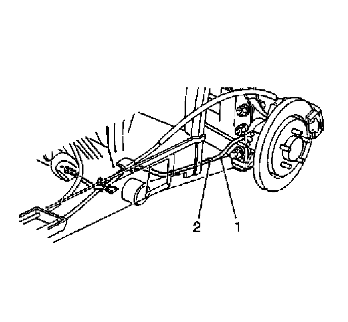 3. Remove the rear wheel speed sensor jumper harness (1) from the retaining clips (2).