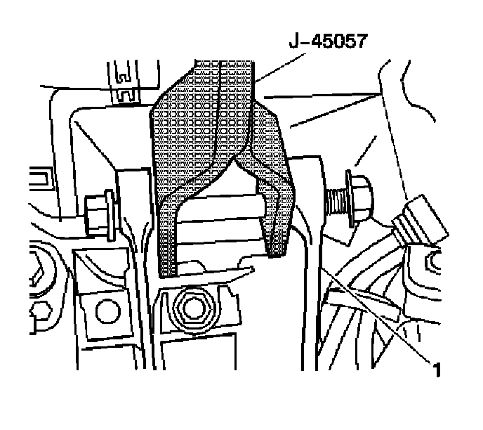 2. Install the J 45057 to the right engine mount strut bracket (1).
