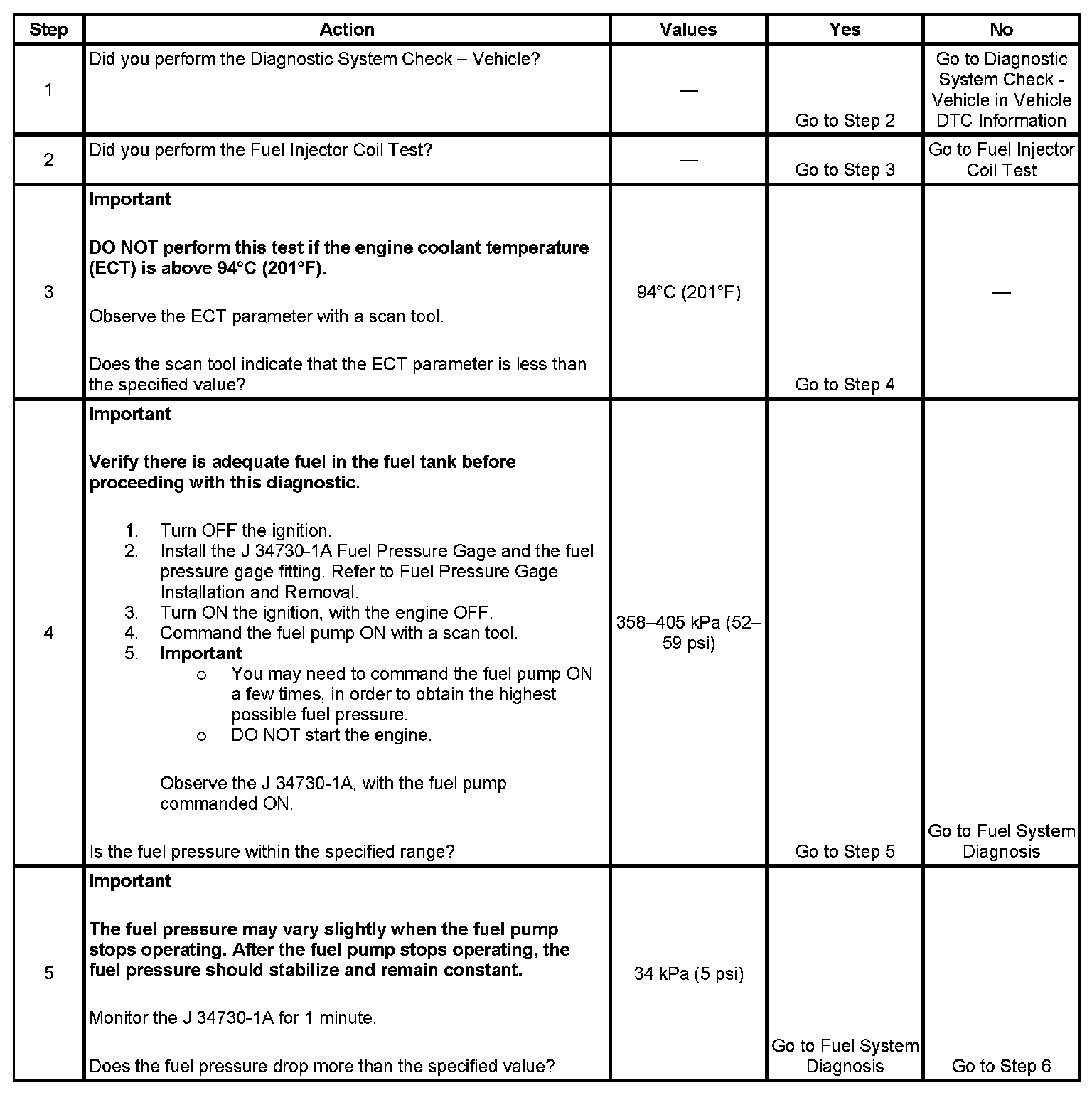 3. The engine coolant temperature (ECT) must be below the operating temperature in order to avoid irregular fuel pressure readings due to hot soak fuel boiling.
