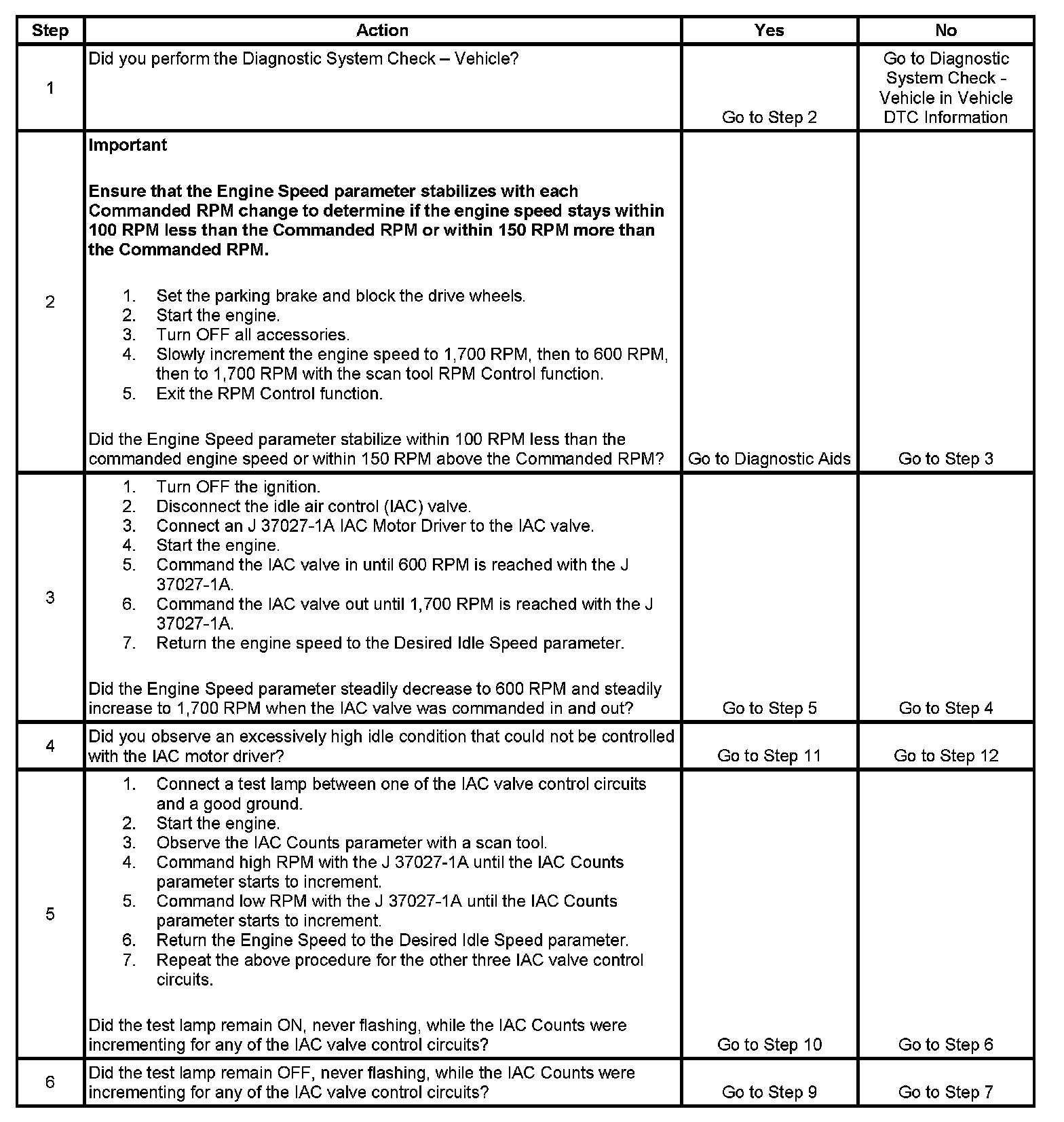 Idle Air Control (IAC) System Diagnosis