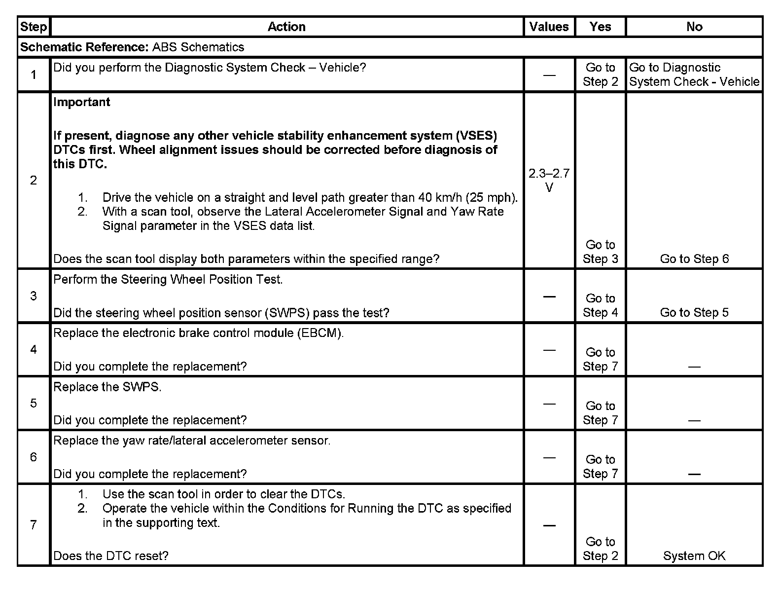 If present, diagnose any other VSES DTCs first. Wheel alignment issues should be corrected before diagnosis of this DTC.